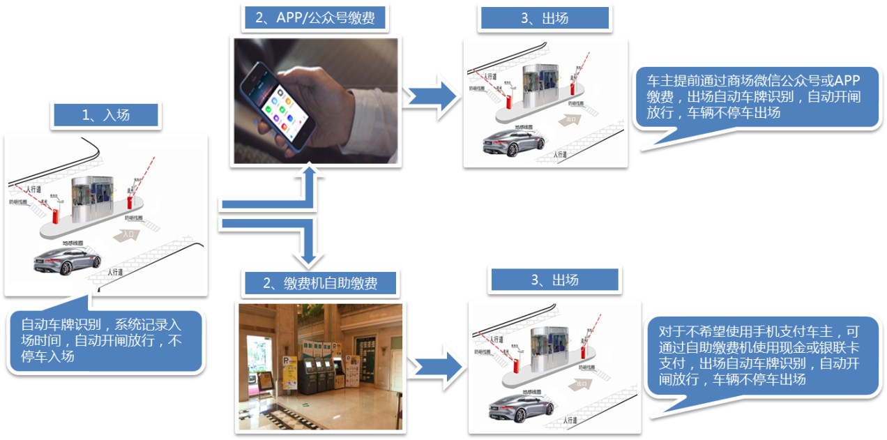 臨時車輛車牌識別不停車進場,手機/自助繳費機自助繳費后不停車出場,給臨時車輛帶來極佳的停車體驗。