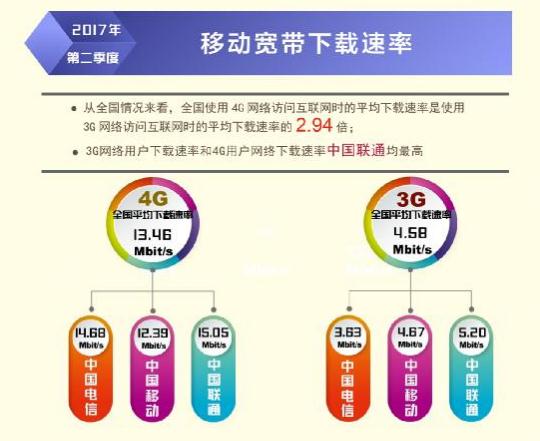 根據(jù)本次報告,除西藏自治區(qū)外,全國其他所有省級行政區(qū)域固定寬帶平均下載速率均超過 12Mbit/s,上海、北京、遼寧率先超過或達到了 15Mbit/s,位列全國前三,山東、江蘇緊隨其后。在直轄市和省會城市固定寬帶下載速率排行榜上,上海、北京、濟南、天津、福州位居前五位。從移動寬帶網(wǎng)速狀況看,重慶、福建、遼寧、江蘇、河北的 4G 網(wǎng)絡用戶下載速率排在全國省級行政區(qū)前五位;不同電信運營企業(yè)中,中國聯(lián)通的 3G 網(wǎng)絡用戶下載速率和 4G 網(wǎng)絡用戶下載速率均最高,分別達到 5.20 Mbit/s 和 15.05 Mbit/s。